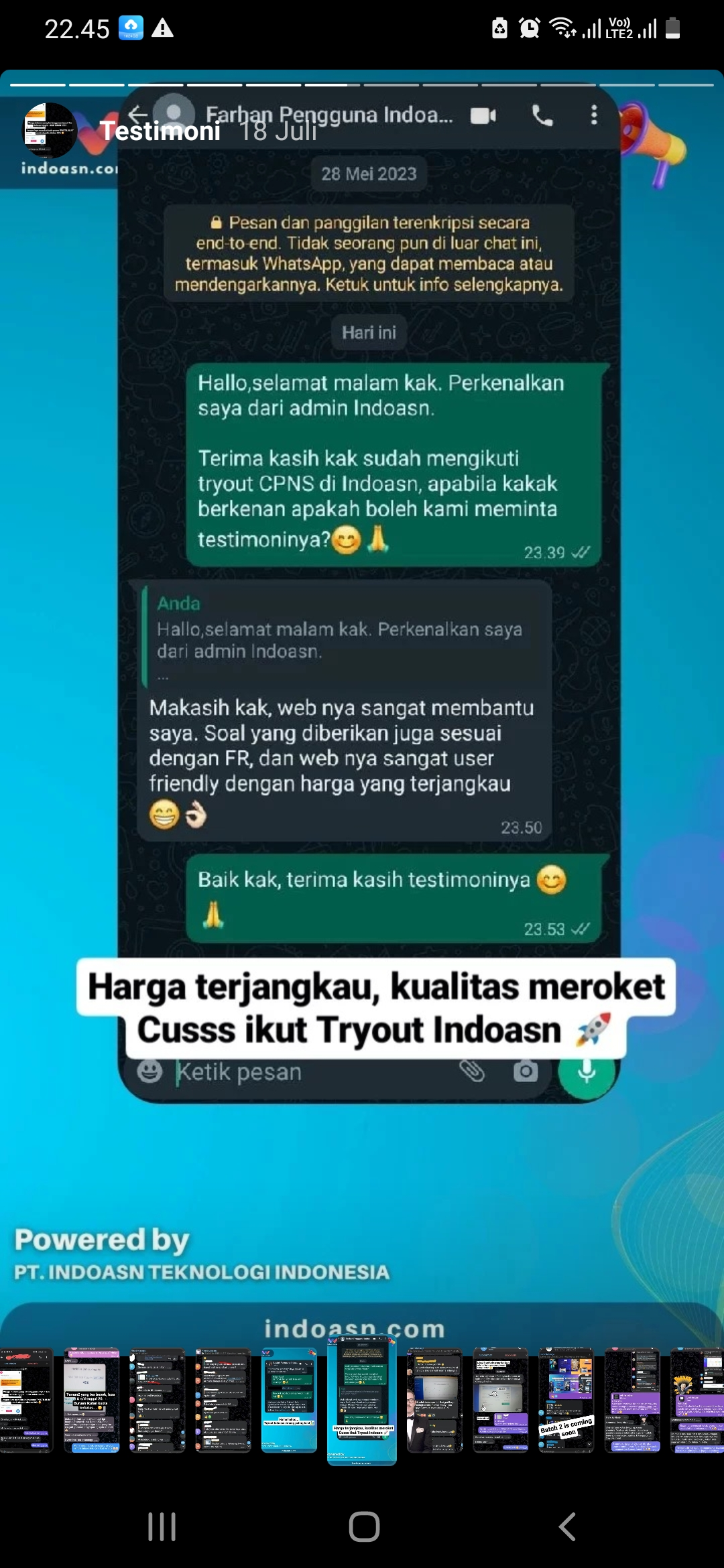 Indoasn merupakan platform tryout online yang memfasilitasi tryout CPNS, PPPK, UTBK, Kedinasan, dan Tes Bahasa Asing. Platform ini merupakan pilihan yang tepat bagi mereka yang ingin mempersiapkan dirinya dalam mewujudkan impiannya.